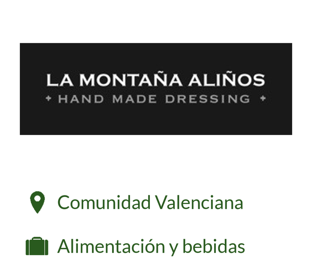 Facebook Linkedin Instagram lamontanaalinos.com Concentaina, Alicante, Comunidad Valenciana Alimentación y bebidas La Montaña Aliños es una empresa familiar del interior de la provincia de Alicante. Elaboramos aliños artesanos con ingredientes 100% naturales. Destacan por su originalidad y por sus vivos colores y enriquecen cada plato con los sabores delicados de las frutas y hierbas de […]