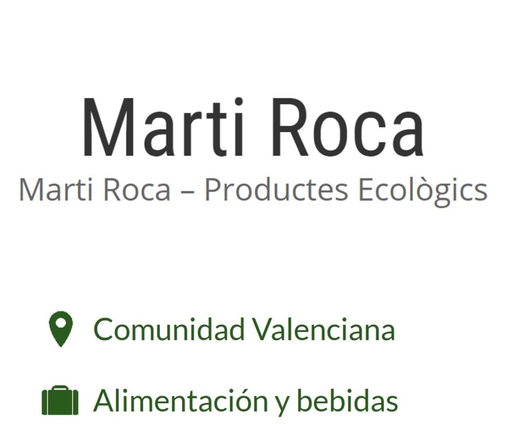 Facebook Linkedin Instagram www.martiroca.es Canet lo Roig, Castellón, Comunidad Valenciana Alimentación y bebidas Distribuidores de aceite virgen extra ecológico ¿Quieres contactar? Envíanos tus datos y los del proyecto o emprendedor que te ha gustado y os pondremos en contacto para que podáis seguir colaborando juntos. ¡Muchos éxitos! Aviso Legal Política de privacidad Política de Cookies