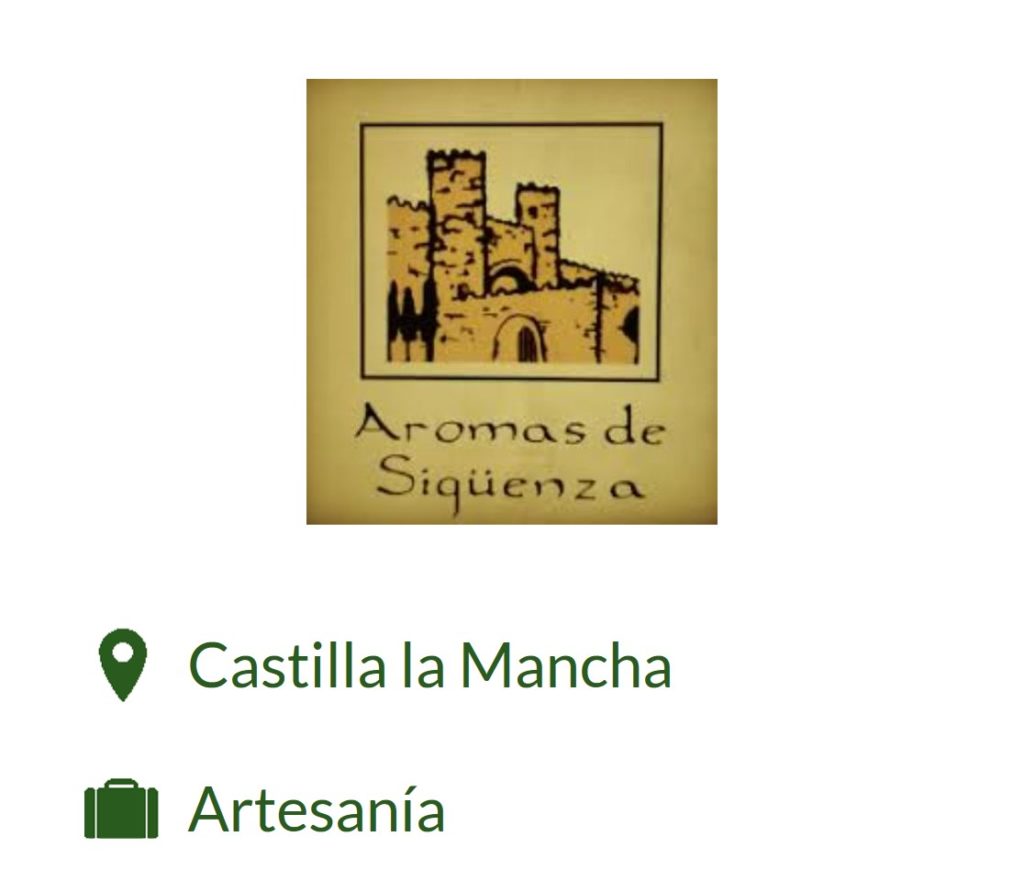 Facebook Linkedin Instagram Instagram Aromas de Sigüenza Sigüenza, Guadalajara, Castilla la Mancha Artesanía Somos perfumistas y amantes de la naturaleza. Elaboramos ambientadores y cosmética basados en plantas aromáticas de forma artesanal y sostenible en Sigüenza. ¿Quieres contactar? Envíanos tus datos y los del proyecto o emprendedor que te ha gustado y os pondremos en contacto […]