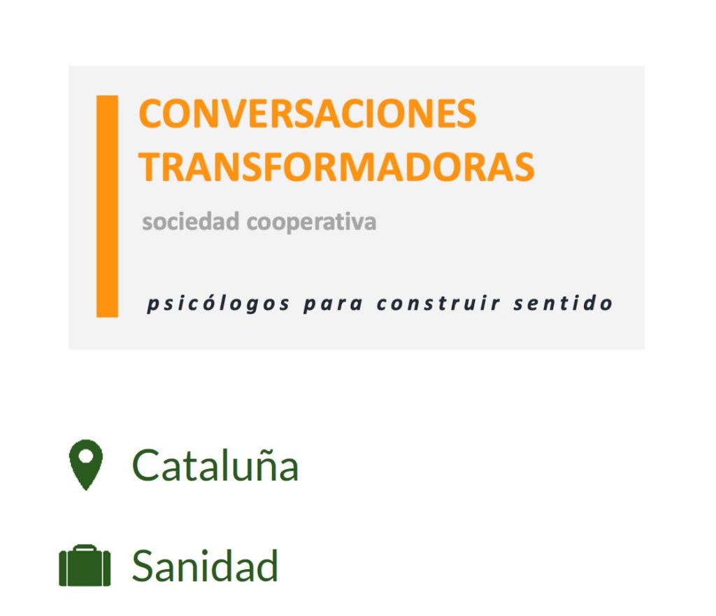 Facebook Linkedin Instagram lagleva.com Sant Pere de Ribes, Cataluña Sanidad Cooperativa en formación de psicólogos jóvenes con mentores profesionales que ofrece acompañamiento personalizado, talleres de desarrollo personal y círculos de comprensión y apoyo mutuo. ¿Quieres contactar? Envíanos tus datos y los del proyecto o emprendedor que te ha gustado y os pondremos en contacto para […]