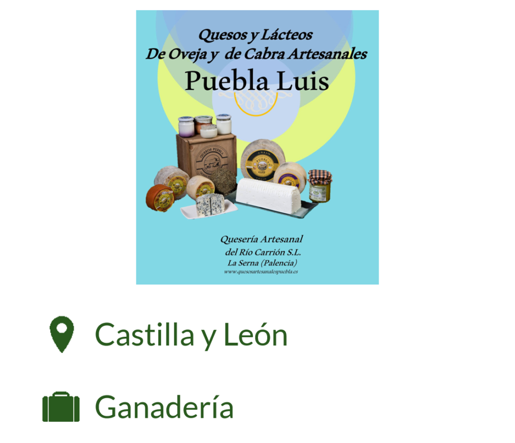 Facebook Linkedin Instagram quesosartesanalespuebla.es La Serna, Palencia, Castilla y León Ganadería Somos una empresa familiar de queso y productos lácteos artesanos caseros de oveja o de cabra, con ganadería propia. Nuestra familia se ha dedicado desde siempre a la ganadería ovina. Nuestros productos, son de producción propia, siempre limitada, y por supuesto artesanales. Nuestra materia […]
